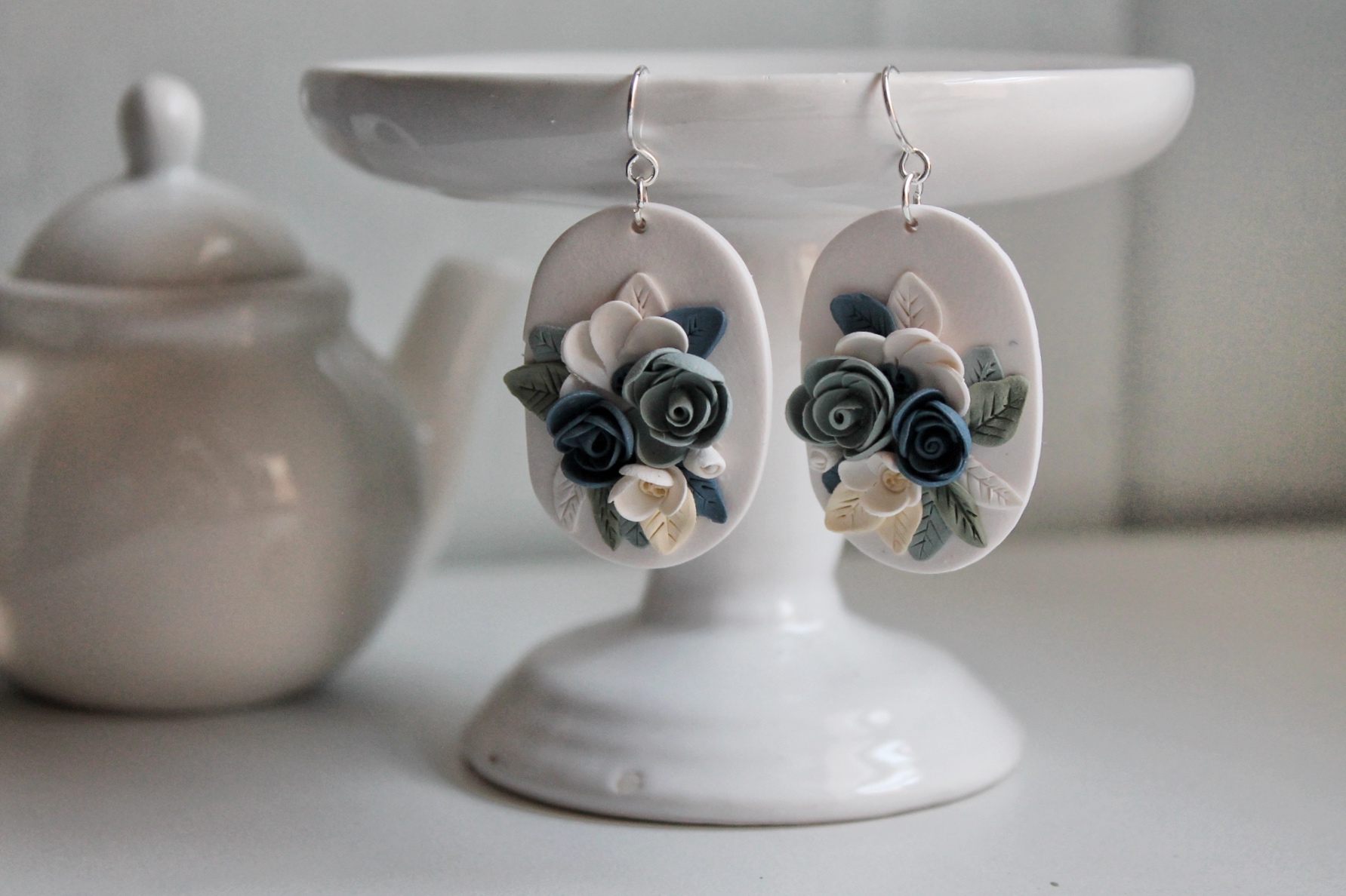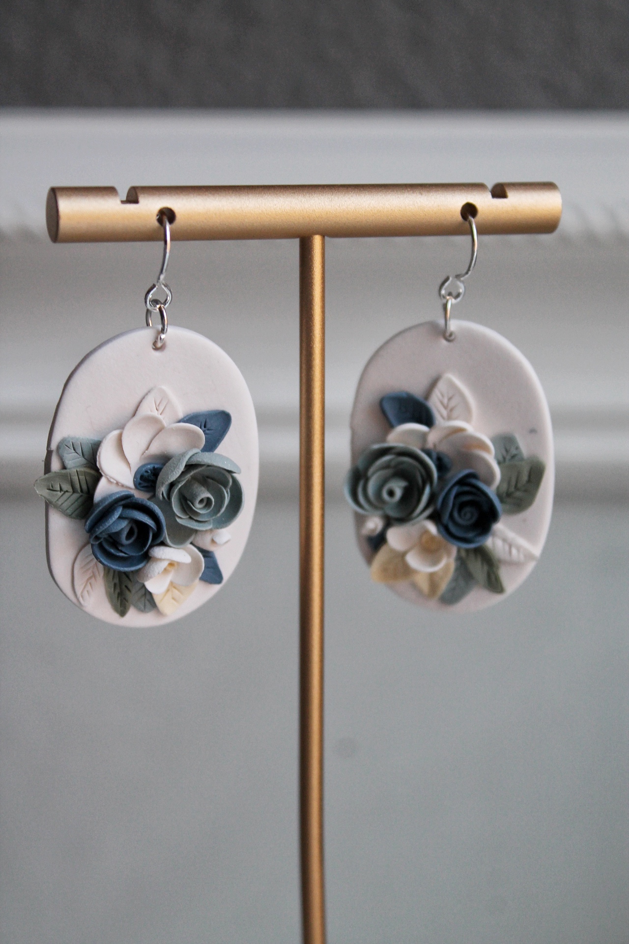 Blue Rose Dangles. Lightweight/hypoallergenic.
