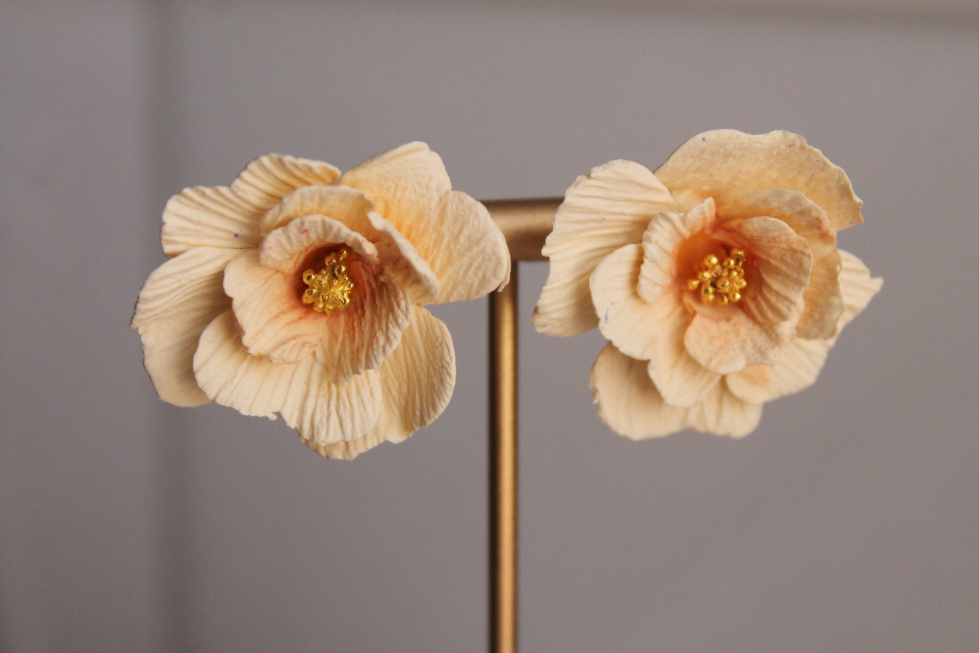 Rustic red colored floral earrings. Lightweight/Hypoallergenic.
