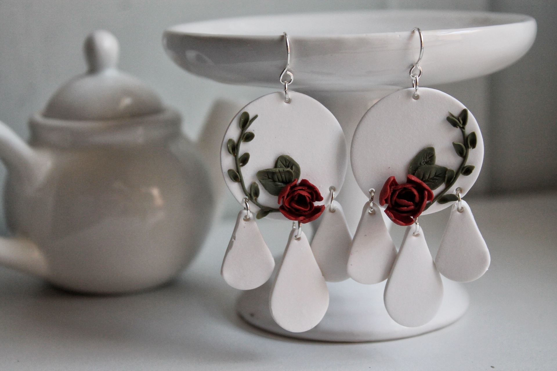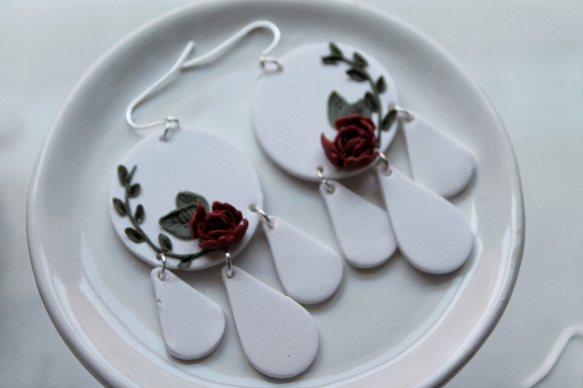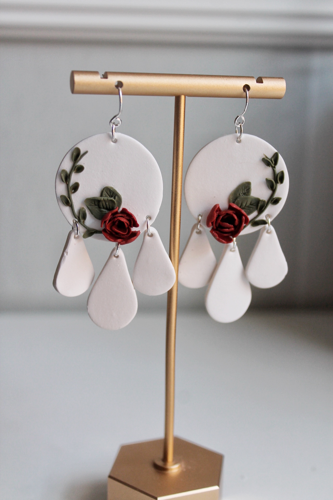 Rustic red colored floral earrings. Lightweight/Hypoallergenic.